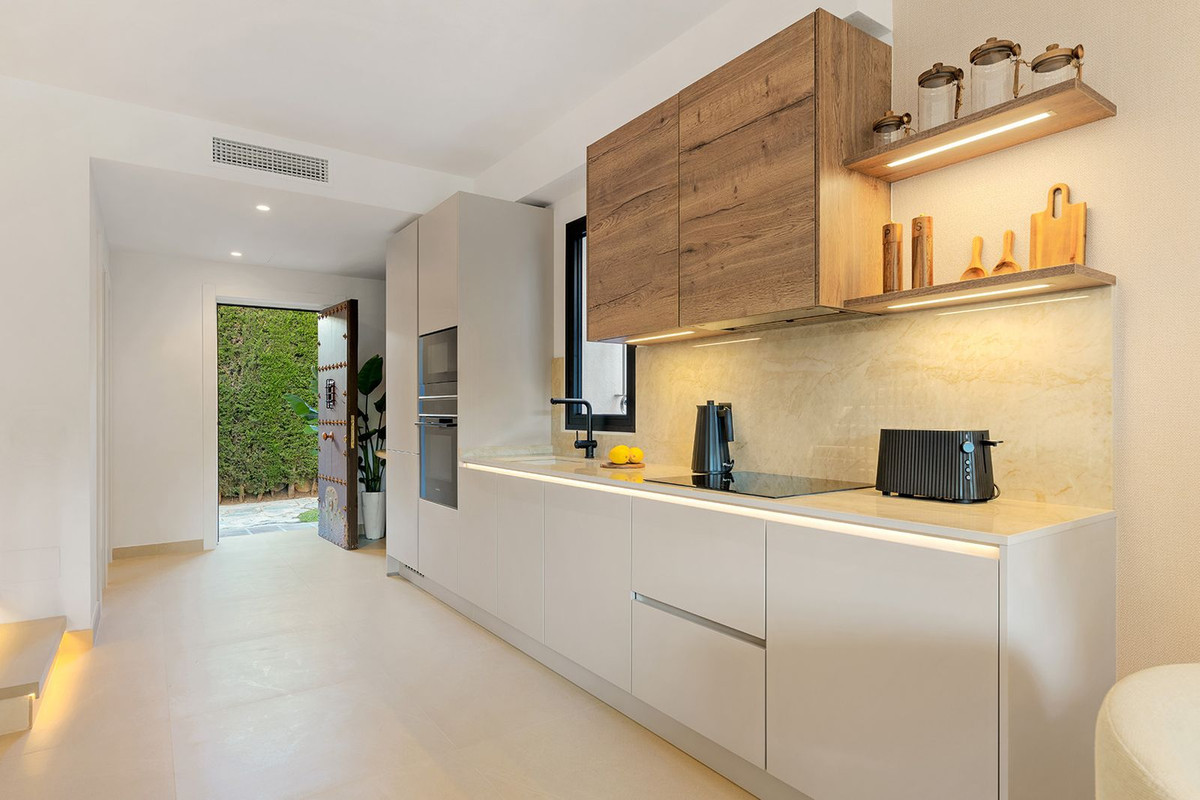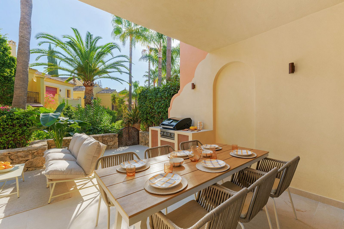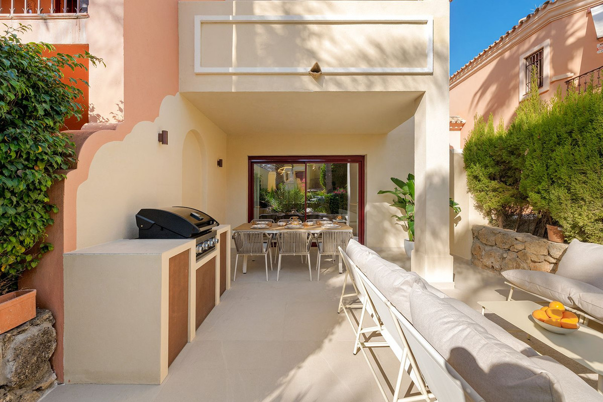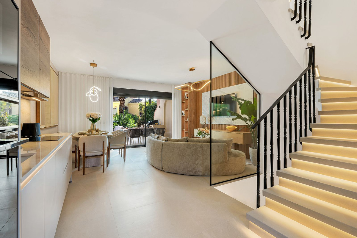 Таунхаус, Jardines de las Lomas – Originally constructed in 2002 and due to fully reformed and furnished in October 2025, this spacious four bedroom, three level townhouse is an ideal choice for families seeking a luxurious residence within a secure community, just a short walk from beaches, fine dining, and Marbella’s top international schools. Offering 238m² of living space across three levels, including 37m² of terraces, the property boasts high end finishes throughout. The lower level features a private garage, a multi purpose lounge/cinema room, laundry area and an independent storage room. The ground floor is designed for seamless modern living, with an open plan kitchen fitted with Siemens appliances, flowing effortlessly into the dining and living areas. A covered terrace with a bespoke BBQ outdoor kitchen provides the perfect setting for entertaining, leading to an open terrace with direct gated access to the well maintained urbanisation. There is also a guest bedroom and bathroom on this level. On the first floor, the master bedroom features an en suite bathroom, a walk in wardrobe, and a private terrace overlooking the gardens and pool. Two additional guest bedrooms and a family bathroom complete this level. This home is surrounded by Marbella’s most sought after luxury Branded residences, which continue to set record sales prices and appreciate in value. Marbella’s most prestigious beaches and hotels are just a short stroll away, with Le Village conveniently nearby for your morning coffee and daily essentials. Within a 5 minute drive Puerto Banus offers exceptional lifestyle amenities and shopping, includng El Corte Ingles, Gucci, Louis Vuitton and Hermes. The transport links are excellent, with the modern AP7 motorway just minutes away, providing easy access to Marbella and the entire Costa del Sol. Public transport is also conveniently accessible. Aloha International College is situated just two minutes away by car and Swans International School less than ten minutes away. Both known for their academic excellence and outstanding facilities. Golf lovers have Marbella’s finest courses at their fingertips, including Aloha and Los Naranjos. This property presents a rare opportunity to own a fully modernised, beautifully furnished home in one of Marbella’s most sought after locations, at a fraction of the cost of its neighbouring luxury developments. Move in and start enjoying the Marbella lifestyle immediately, without the hassle of renovations or refurbishment.