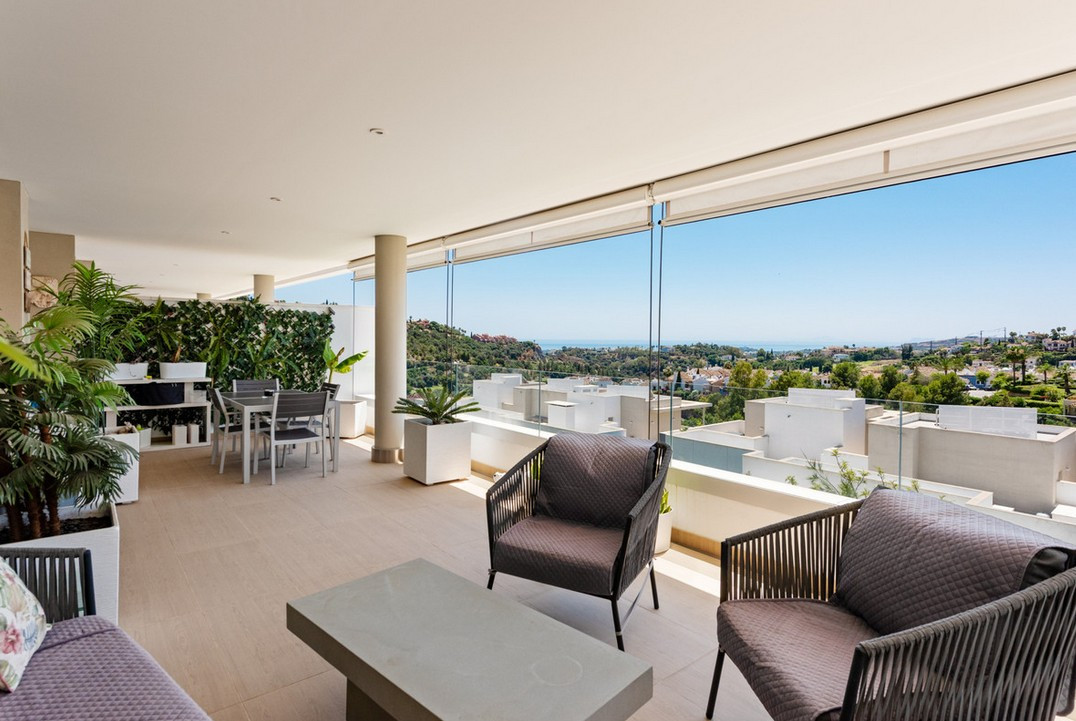 Апартамент, Botanic – Stylish Modern Apartment with Breathtaking Coastal Views. Nestled in Benahavis, this first-floor apartment blends contemporary comfort with stunning natural surroundings. It’s the perfect retreat for those craving peace and privacy while remaining just a short drive from the coast. Built in 2018, the apartment offers three spacious bedrooms, including a master suite with direct terrace access and a luxurious en-suite bathroom. Both bathrooms are fitted with underfloor heating, adding a touch of everyday indulgence.