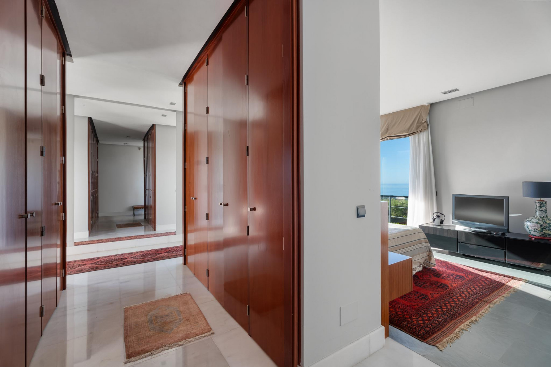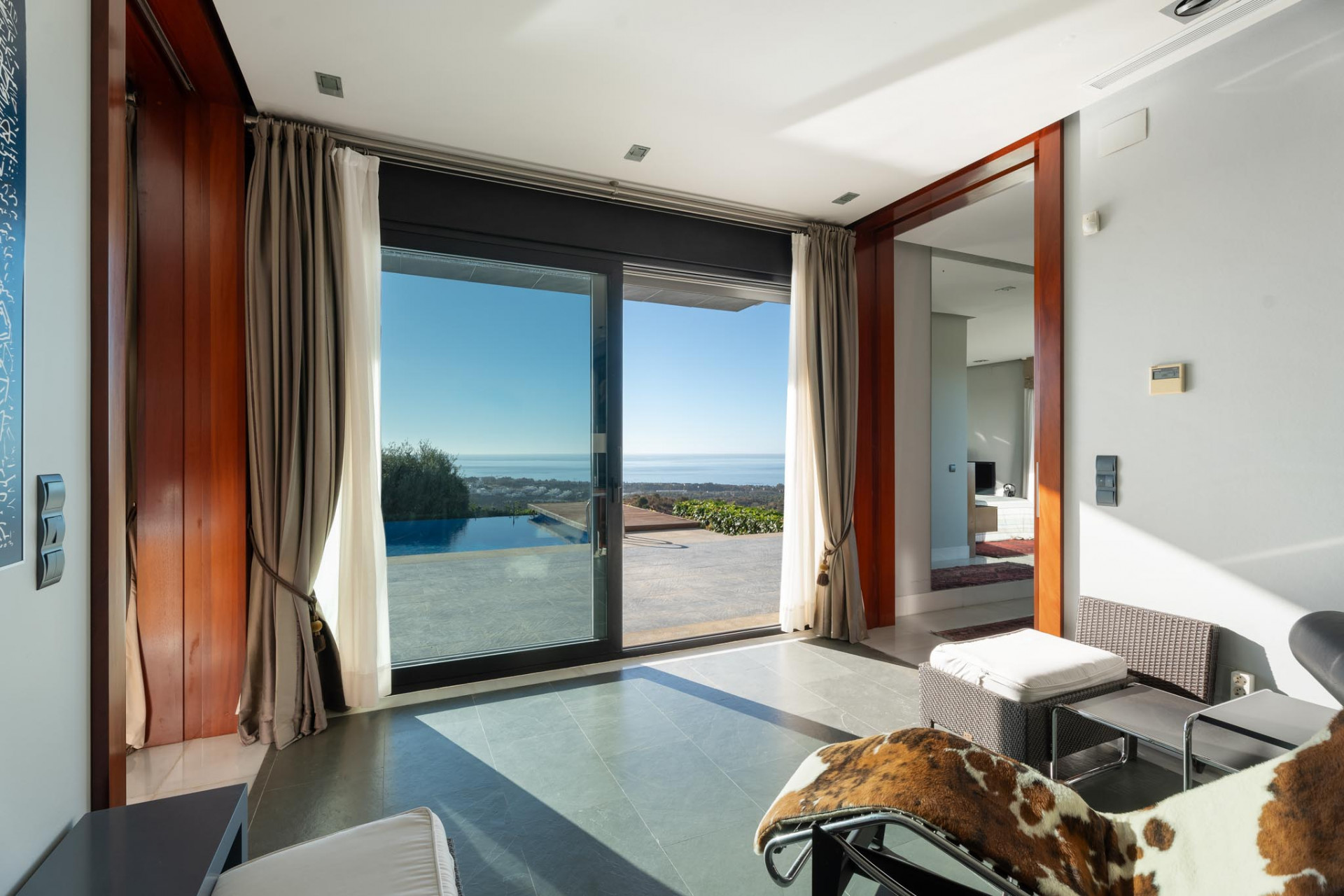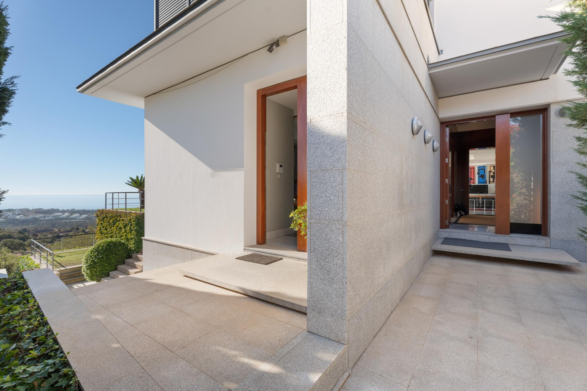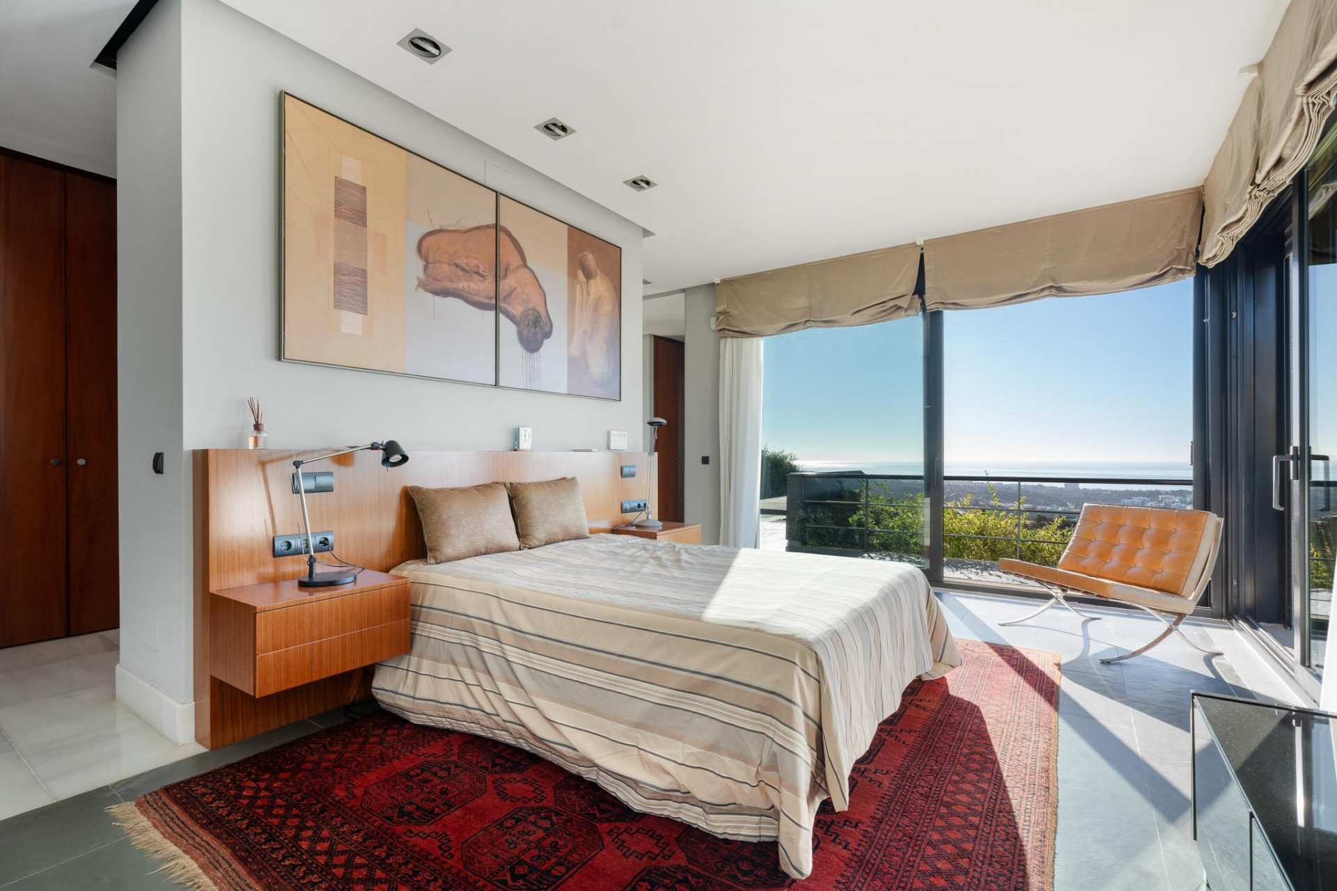 Вилла, Los Altos de los Monteros – This elegant villa is located in the elevated area of Marbella East, offering panoramic views of the Mediterranean and surrounding mountains. Designed for privacy and comfort, it combines contemporary architecture with refined details and has been built with high-quality materials. The entrance hall welcomes with impressive double-height ceilings that fill the space with natural light. The main floor features a spacious living and dining area with large glass doors that open onto covered and uncovered terraces, creating a seamless connection between indoor and outdoor living. The villa comprises five bedrooms, each with an ensuite bathroom and private terrace. The primary suite, situated on the main floor, includes a walk-in wardrobe and a terrace with captivating sea views. On the lower level, a guest bedroom with a separate entrance offers privacy and independence, ideal for visitors or staff accommodation. The remaining three bedrooms occupy the entire first floor, providing comfort and views from every room. Additional interior features include a private office, sauna, and a versatile basement area. Every space has been thoughtfully designed to achieve a sense of balance, light, and functionality. Outside, the landscaped garden extends across two levels, enhancing the natural setting and framing the panoramic coastal and mountain views. The pool area enjoys complete privacy, offering a peaceful atmosphere for relaxation.