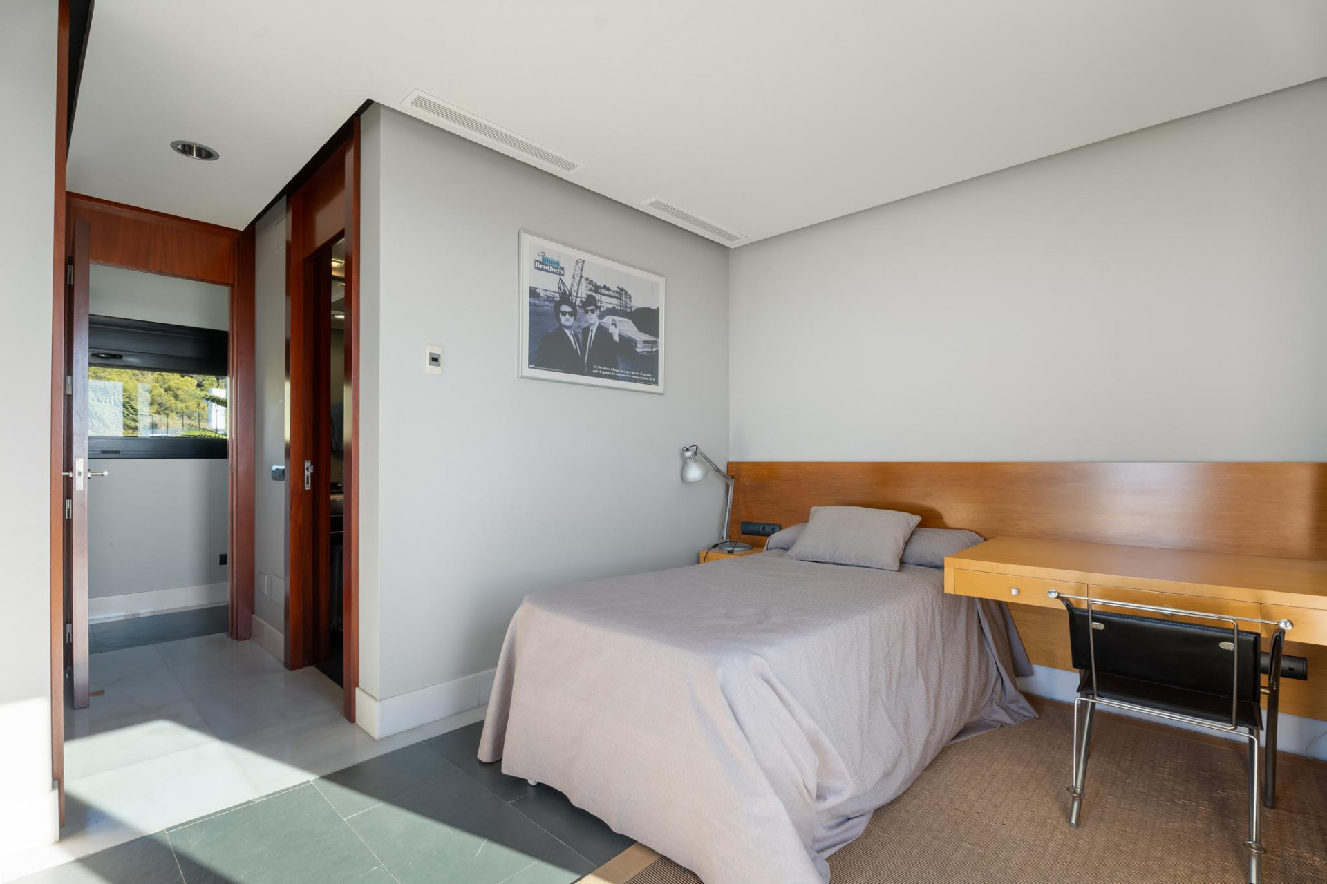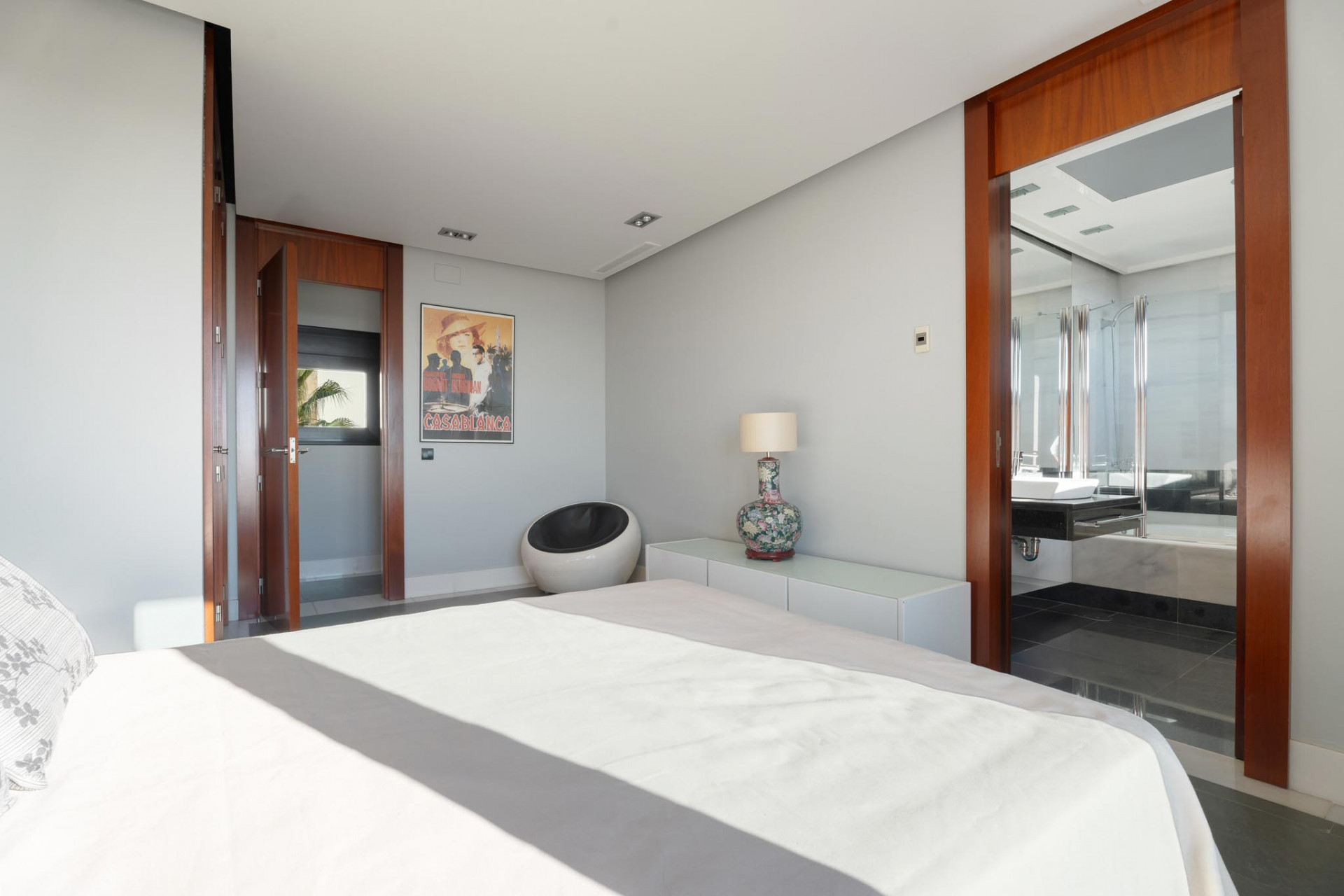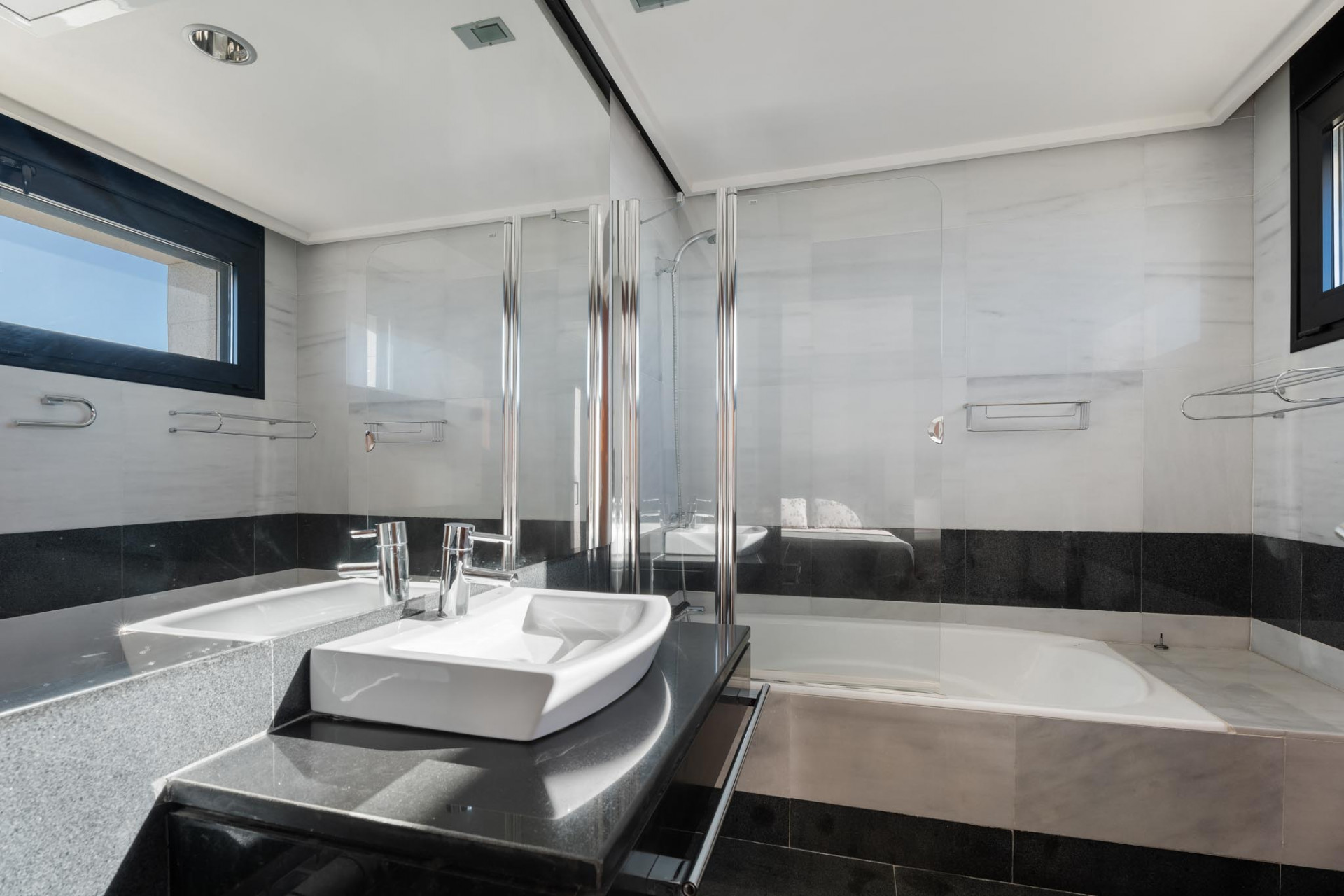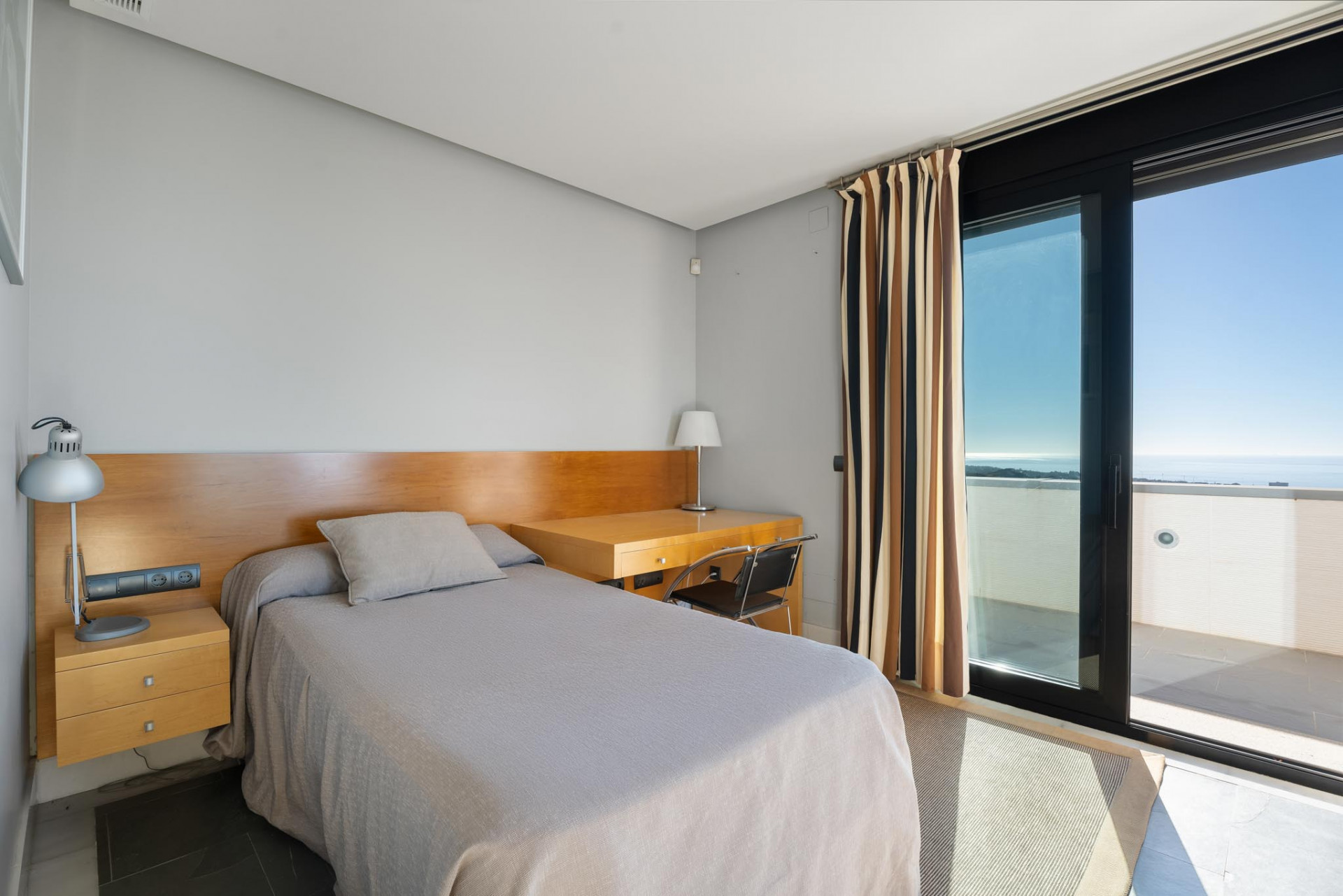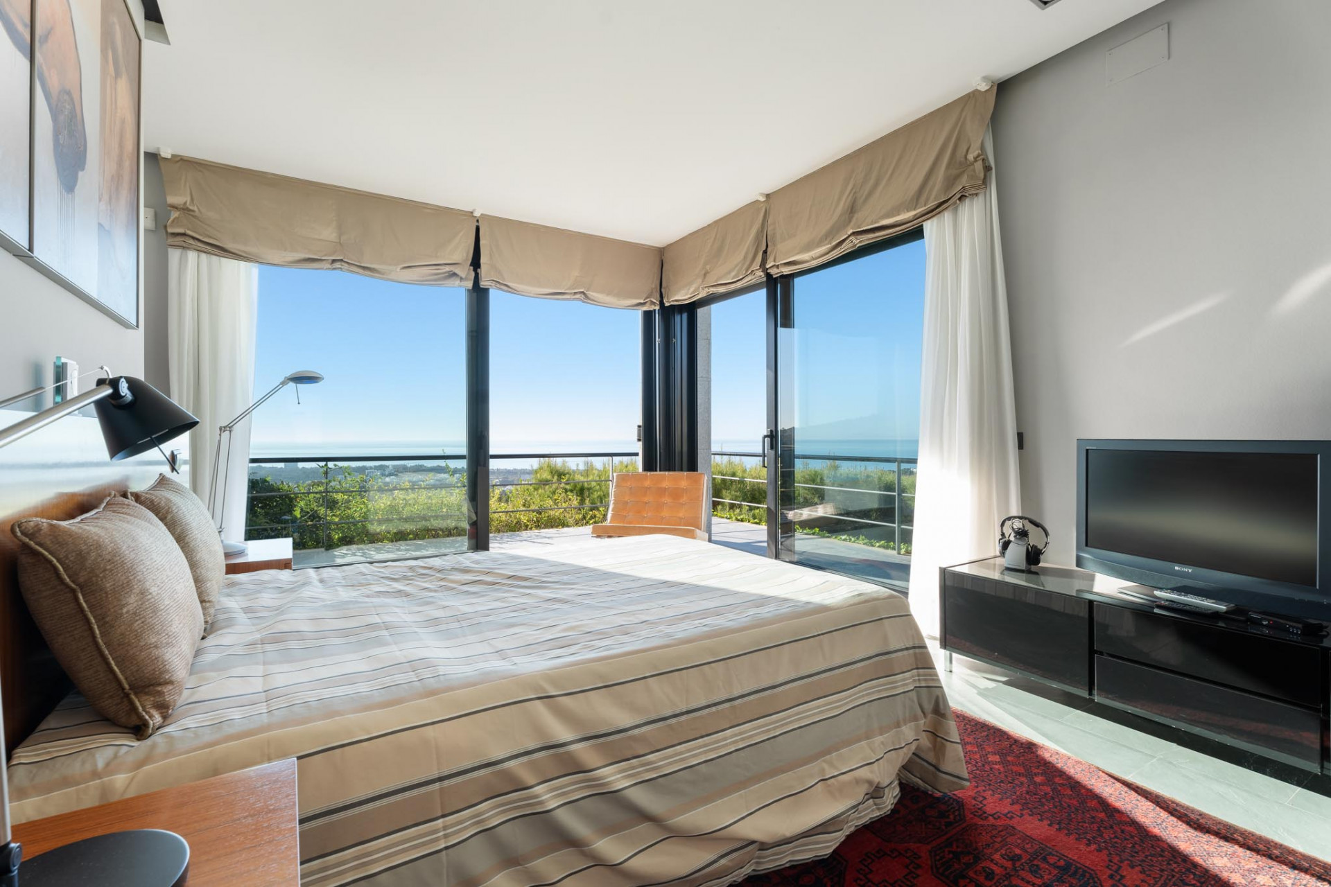 Вилла, Los Altos de los Monteros – This elegant villa is located in the elevated area of Marbella East, offering panoramic views of the Mediterranean and surrounding mountains. Designed for privacy and comfort, it combines contemporary architecture with refined details and has been built with high-quality materials. The entrance hall welcomes with impressive double-height ceilings that fill the space with natural light. The main floor features a spacious living and dining area with large glass doors that open onto covered and uncovered terraces, creating a seamless connection between indoor and outdoor living. The villa comprises five bedrooms, each with an ensuite bathroom and private terrace. The primary suite, situated on the main floor, includes a walk-in wardrobe and a terrace with captivating sea views. On the lower level, a guest bedroom with a separate entrance offers privacy and independence, ideal for visitors or staff accommodation. The remaining three bedrooms occupy the entire first floor, providing comfort and views from every room. Additional interior features include a private office, sauna, and a versatile basement area. Every space has been thoughtfully designed to achieve a sense of balance, light, and functionality. Outside, the landscaped garden extends across two levels, enhancing the natural setting and framing the panoramic coastal and mountain views. The pool area enjoys complete privacy, offering a peaceful atmosphere for relaxation.