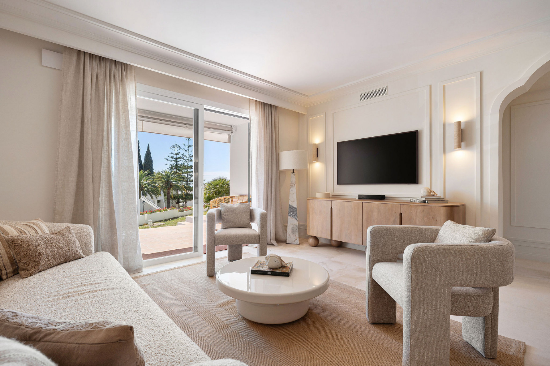 Апартамент на нижнем этаже, Andalucia Garden Club – Set within the sought-after Andalucía Garden Club in Nueva Andalucía, this beautifully renovated corner apartment captures the essence of refined Mediterranean living, where light, space, and timeless design come together in perfect harmony. Surrounded by lush gardens and just moments from Centro Plaza, vibrant cafés, and the coastline, the setting offers both tranquillity and effortless access to Marbella’s most desirable lifestyle. Inside, the home unfolds through elegant open spaces filled with natural light, where a sleek, fully integrated kitchen flows into a sophisticated living area, extending seamlessly onto a covered terrace designed for relaxed outdoor living. The interiors blend contemporary finishes with subtle Andalusian character, creating a warm and inviting atmosphere throughout. Every detail has been carefully considered to enhance comfort and style, making this a residence that feels both elevated and effortless. The community itself reflects a sense of calm exclusivity, with mature landscaped gardens, a serene pool area, and a lifestyle defined by privacy and ease. Whether as a permanent home or a refined escape, this property offers a unique opportunity to enjoy the very best of the Costa del Sol. Furniture is available as an optional addition for €30,000, completing a home ready to be lived and experienced from the very first day.