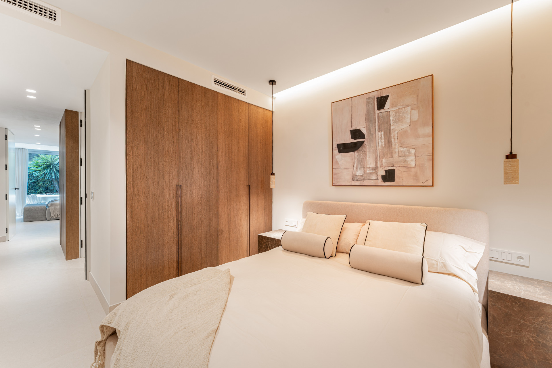 Апартамент, Terrazas de la Quinta – Set within the well-established gated community of Terrazas de La Quinta in Benahavís, Casa Maria presents a beautifully reimagined apartment where thoughtful design meets a calm, residential lifestyle. Currently undergoing a full renovation led by architect Ariadna Plaza, the property reflects a “slow luxury” approach, blending natural materials, soft textures, and timeless simplicity to create a home that feels both elegant and effortlessly livable. The interior opens into a bright, open-plan living space where the kitchen, dining, and lounge areas flow naturally together, extending onto a sunlit terrace that invites relaxed outdoor living. With three bedrooms and a peaceful primary suite set towards the rear, the layout prioritises both comfort and privacy, while the southwest orientation fills the home with warm natural light throughout the day. The community itself offers landscaped gardens, swimming pools, and a sense of understated exclusivity, all just minutes from golf, dining, and everyday amenities. This apartment is more than a renovation project—it’s a refined lifestyle opportunity in one of Benahavís’ most desirable enclaves, ideal as a stylish permanent residence, a tranquil holiday escape, or a smart investment on the Costa del Sol.